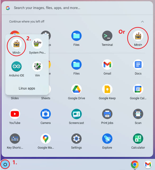 After installed, you can start the **Mind+** app in the Chromebook launcher: