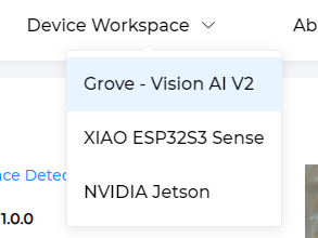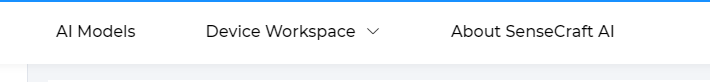 在该页面顶部，您将看到三个栏目，标题分别为： AI 模型、设备工作区、关于 SenseCraft AI。点击设备工作区，选择 Grove - Vision AI V2。
