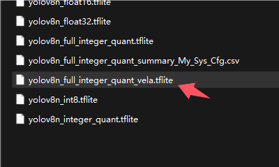 然后你就会得到以“\_vela”结尾的模型，这个模型是可以用于部署在Grove Vision V2上的模型文件。