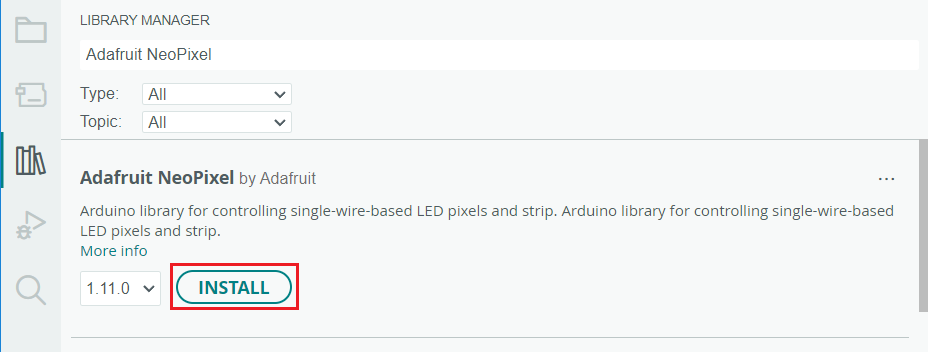 Install the latest version of the Adafruit NeoPixel library using the Arduino IDE.