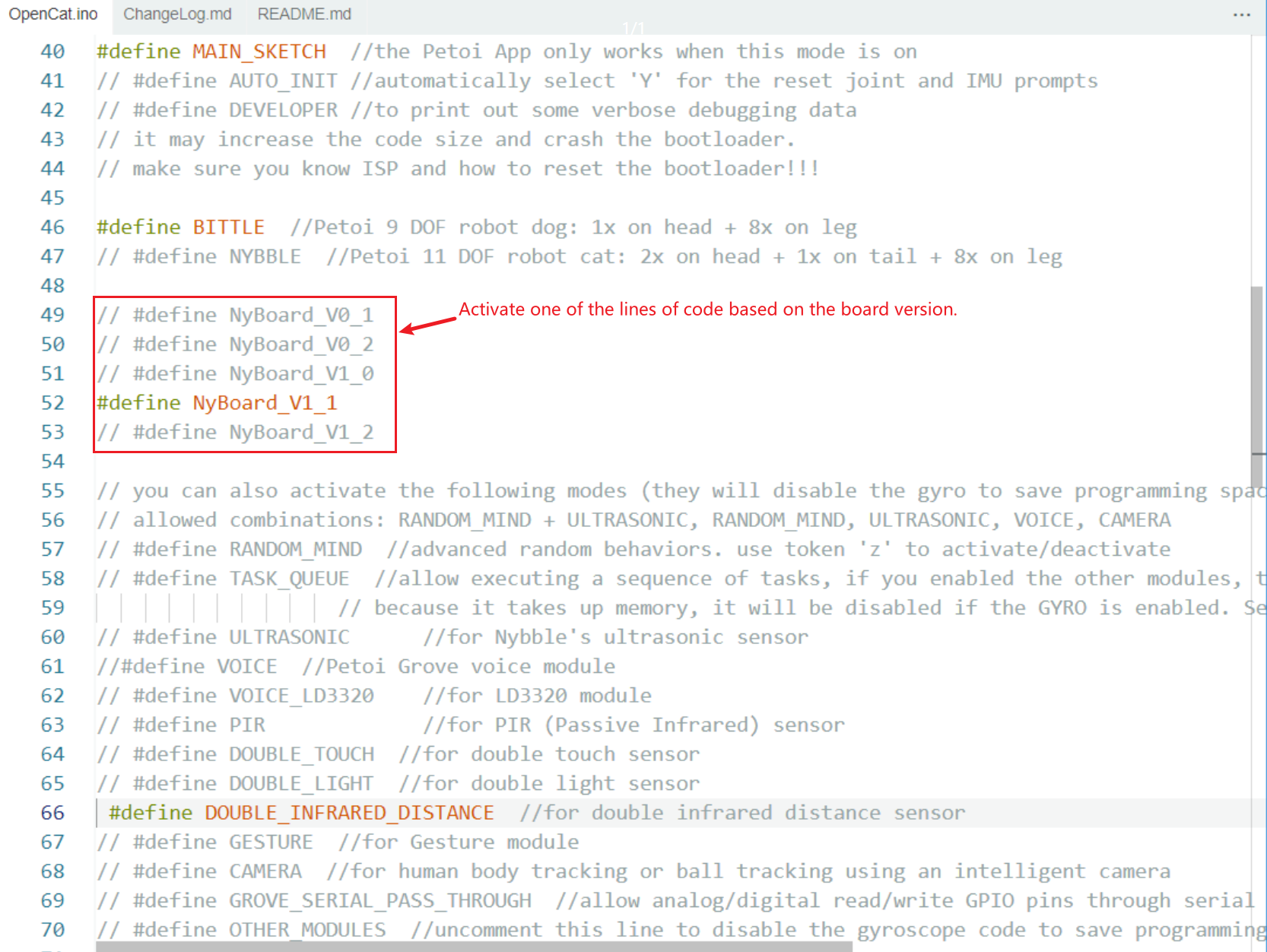 Modify the code in the OpenCat.ino