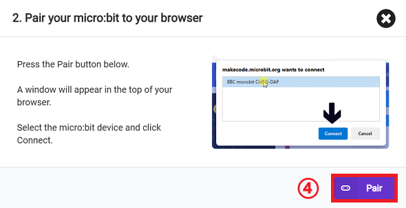 Select BBC micro:bit CMSIS-DAP in the pop-up window and then select Connect. At this point, our Micro: Bit has connected successfully.