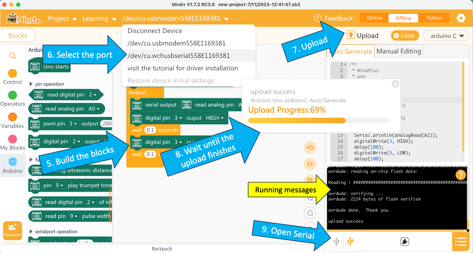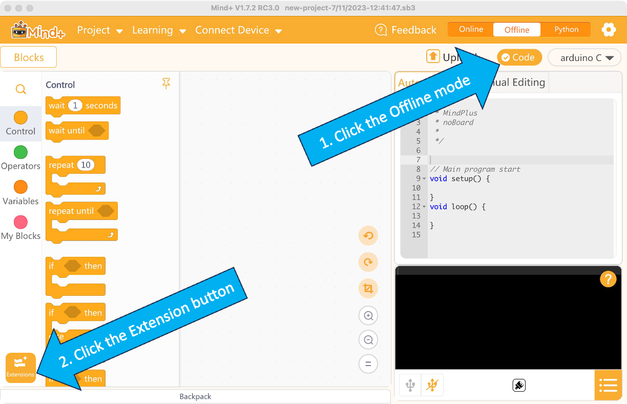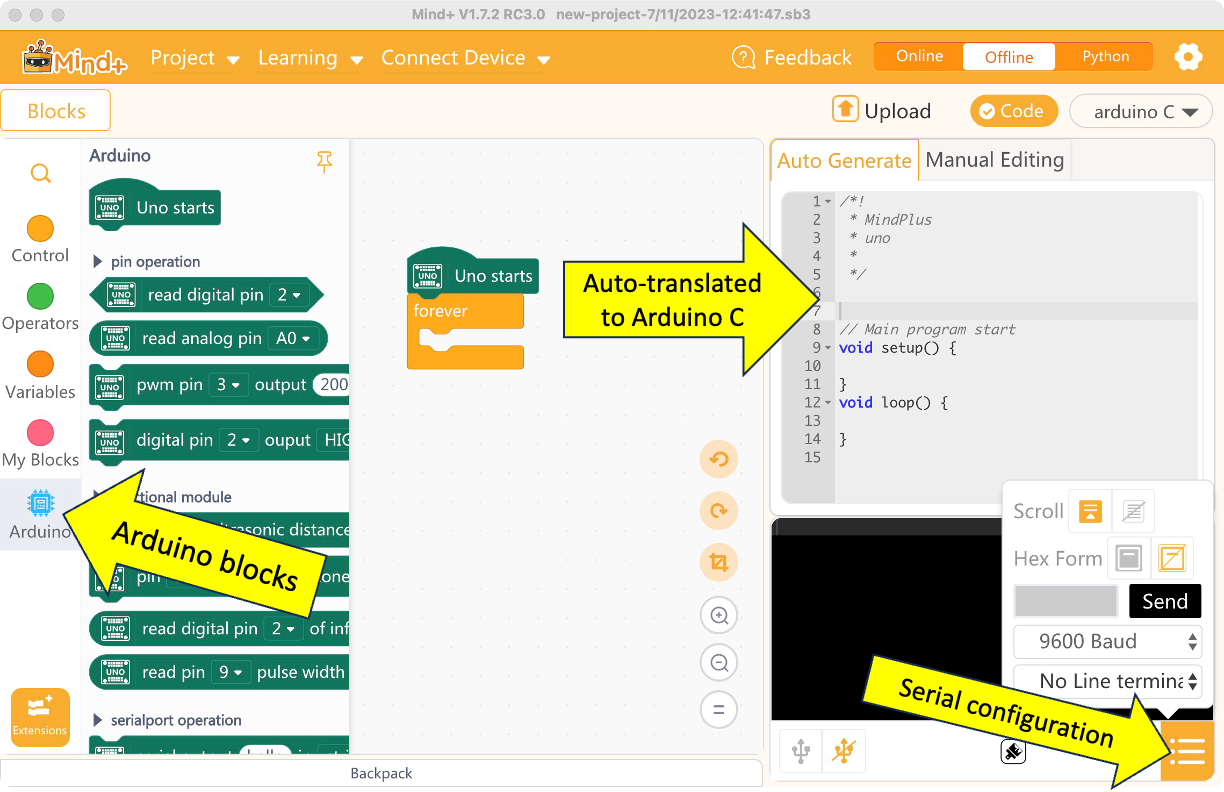 NyBoard is equivalent to a generic Arduino Uno board with rich peripherals. Besides the native Arduino IDE, you can also program it using Mind+ blocks. But be aware that if you use this mode, the original OpenCat firmware will be over-written, and you will need to re-[upload the firmware](https://docs.petoi.com/upload-firmware) later to resume the default robot animal function.&#x20;